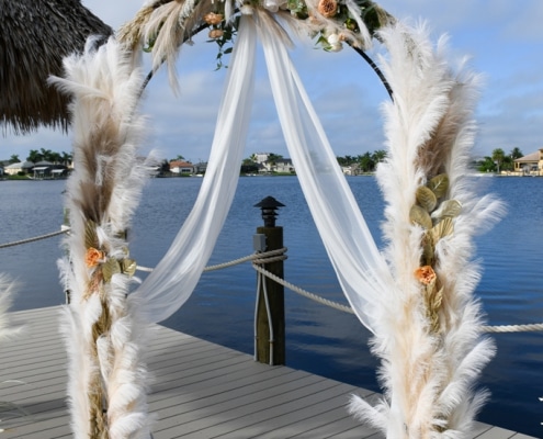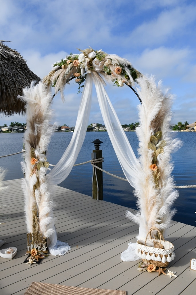 ♥ Romantisch dekorierter Rundbogen dekoriert mit hochwertigen Pampas und einer schönen Blumenkrone.